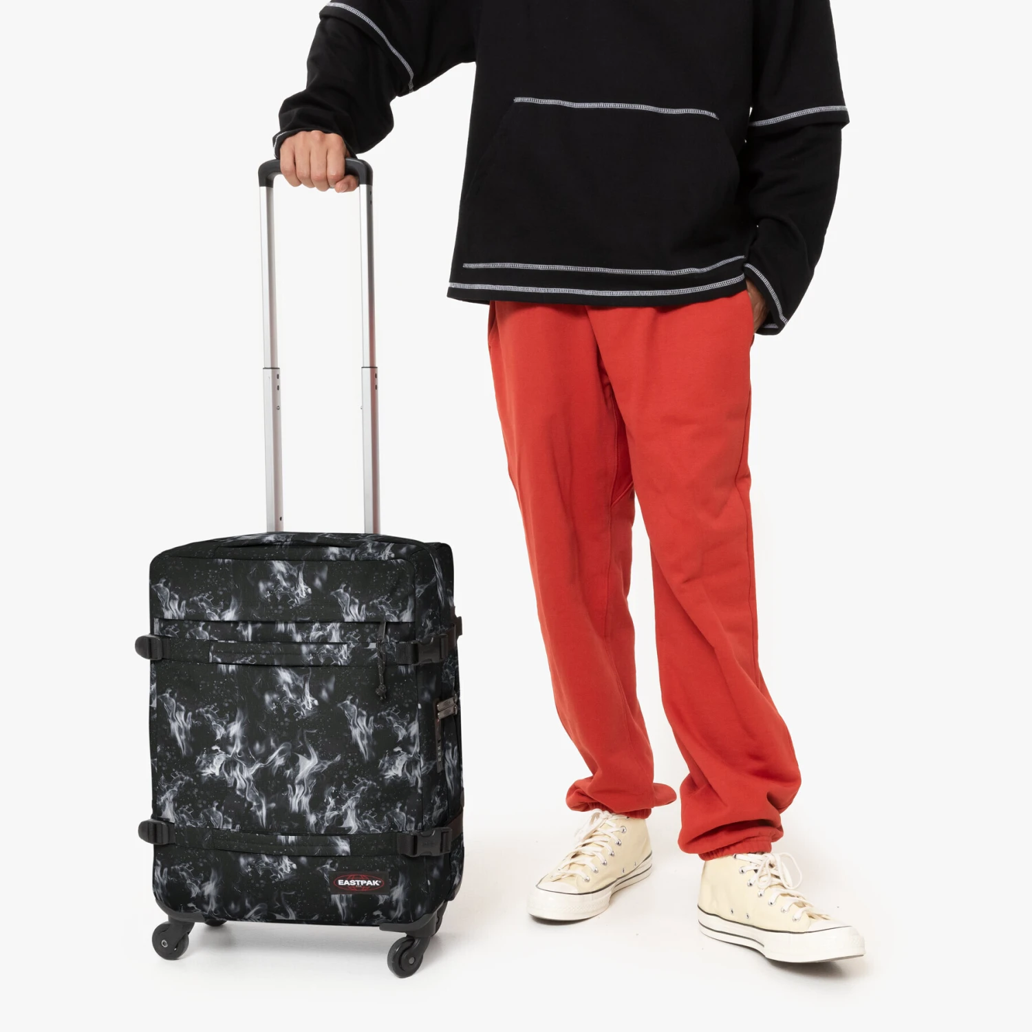 Onze bagage van groot formaat heeft 360-graden zwenkwielen voor moeiteloos glijden. De twee compartimenten houden je spullen veilig opgeborgen dankzij het geïntegreerde sluitsysteem. Dit duurzame bagagestuk heeft aluminium buizen, beschermende rails en een diamant in reliëf op het handvat.